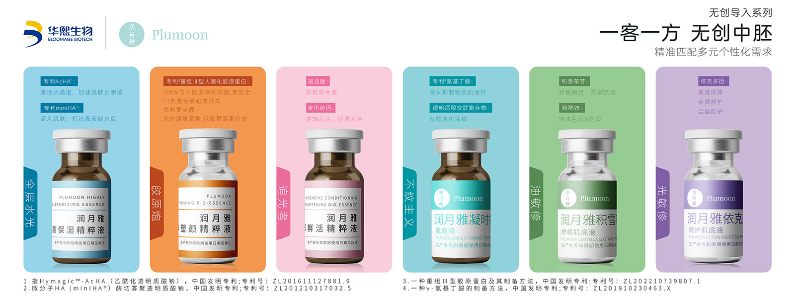 依托华熙生物强大科研力,润月雅精准从源头解决肌肤问题。 研发优势:依托华熙科技研发内核,以透明质酸为核心媒介,通过添加差异化高效能成分(如GABA、胶原蛋白、依克多因、积雪草提取物等)。持续通过精准靶向定位与促渗技术匹配肌肤问题根源,直击不同肌肤问题的核心机制。 医研共创:医美领域的前沿成分技术(如PDRN、ECM调控等)与严格标准应用于生美产品研发,确保安全性与功效性并重。